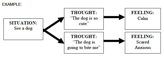 - For example, imagine that you are out for a walk and you see a dog. If you think the dog is cute, you’ll feel calm. However, if you think the dog will bite, you’ll feel scared.